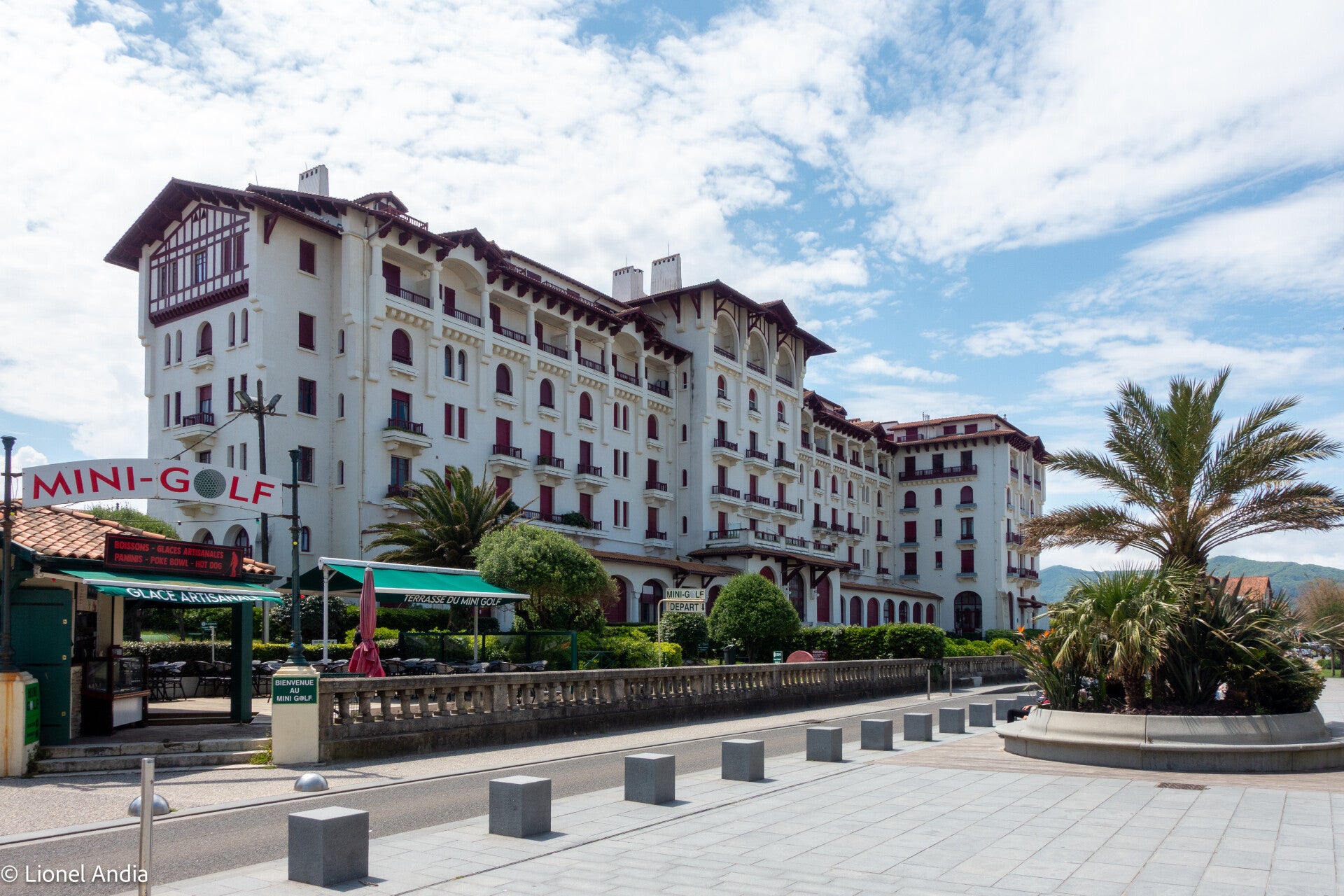 Son architecture remarquable – façades blanches, colombages rouges, toits pentus – reflète parfaitement l’identité régionale basque. L’établissement était à l’origine destiné à une clientèle aisée en quête de bains de mer et de raffinement.