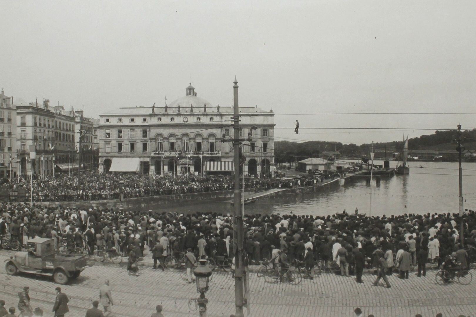 Mais le clou du spectacle a lieu le 14 juillet 1932, avec une prestation qui restera dans les mémoires : la traversée de la Nive par le célèbre funambule Vig-Bill, suspendu au-dessus de la rivière sous les regards médusés d'une foule compacte.