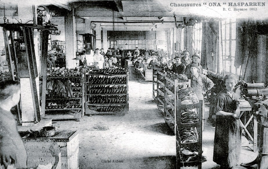 À la fin du XIXᵉ siècle, tout change. L’arrivée de nouvelles machines et l’adoption de méthodes industrielles bouleversent le métier. L’activité se concentre peu à peu dans des ateliers puis dans de véritables usines. Entre 1898 et 1900, Hasparren entre de plain-pied dans l’ère industrielle.