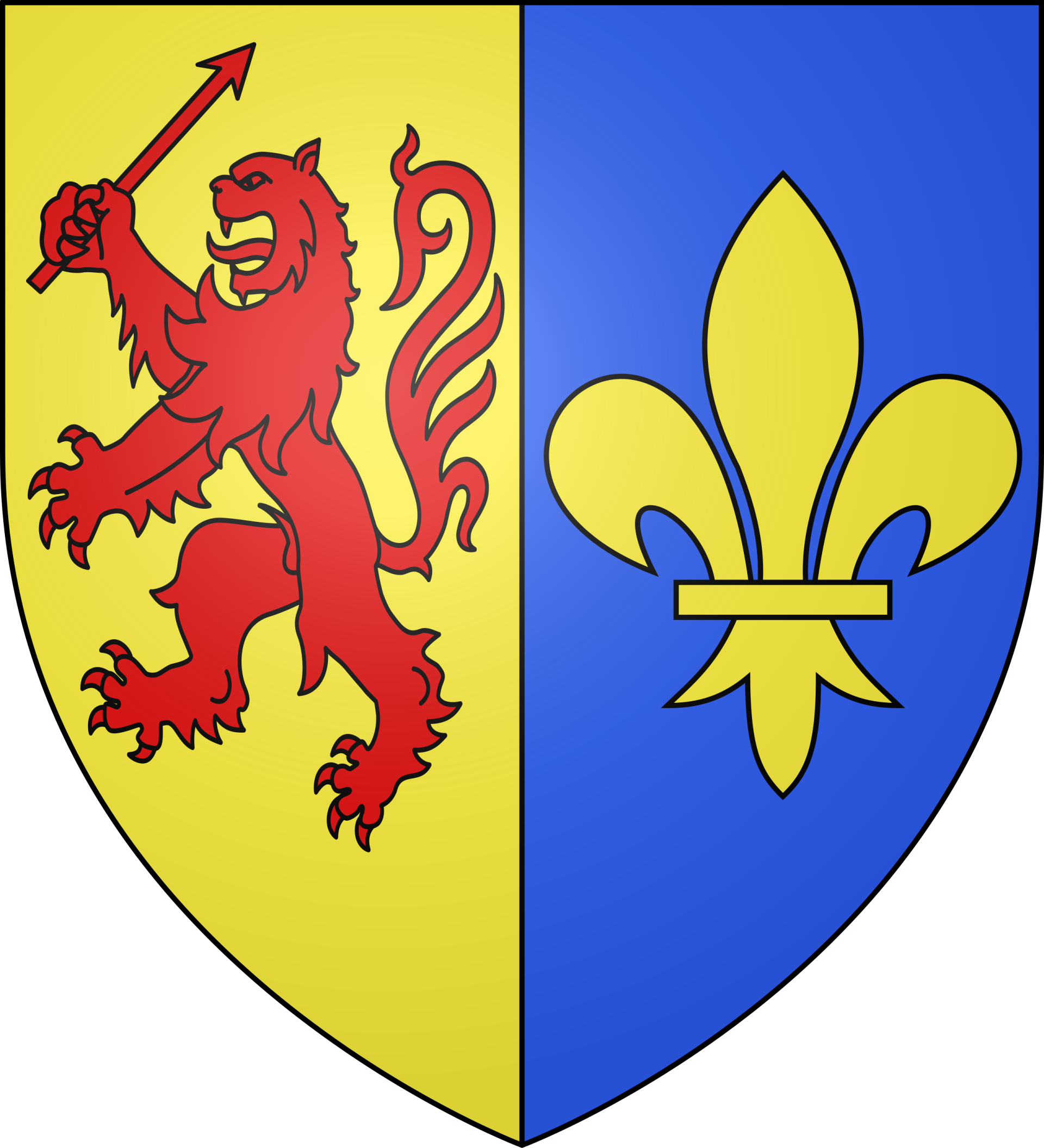 Les armes du Labourd se blasonnent ainsi : Parti : au premier, d'or au lion de gueules rampant tenant en sa dextre un dard de harpon du même, posé en barre, la pointe en haut ; au second, d'azur à la fleur de lys d'or