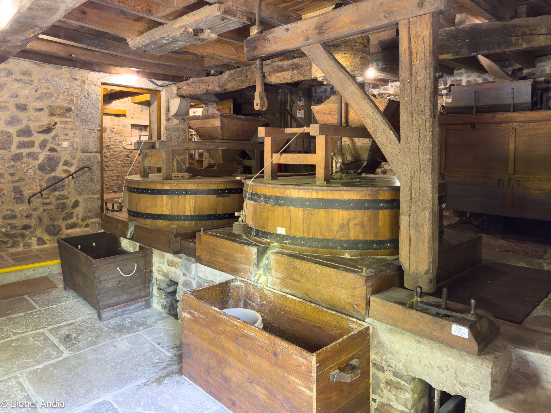 Sur le cadastre de 1831, on distingue déjà le canal de dérivation qui alimente le moulin, preuve de son importance dans l’économie locale. En 1890, il possédait deux paires de meules mues par deux rouets en fonte, produisant farine de blé et de maïs pour les villages voisins.
