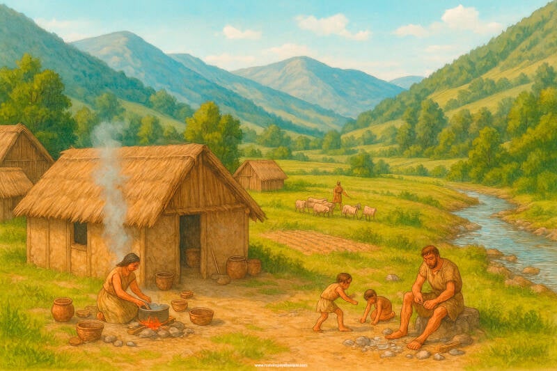 Entre 5500 et 2000 avant notre ère, le Pays basque connaît une profonde mutation. Après des millénaires centrés sur la chasse, la pêche et la cueillette, les populations locales adoptent progressivement l’agriculture, l’élevage et un mode de vie plus sédentaire. Ce changement, venu à la fois du sud (vallée de l’Èbre) et du nord (Aquitaine), ne se produit pas brusquement : il se superpose longtemps aux traditions des chasseurs-cueilleurs autochtones.