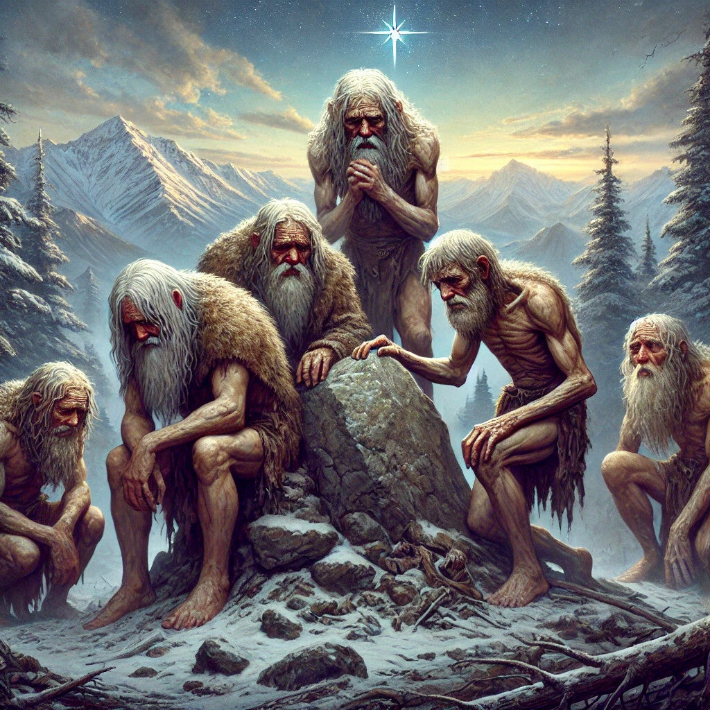 Une légende raconte qu’un jour, une étrange lueur apparaît dans le ciel. Incapables de l’interpréter, les Jentilak consultent le plus ancien et le plus sage d’entre eux. Après avoir observé le phénomène, il déclare :